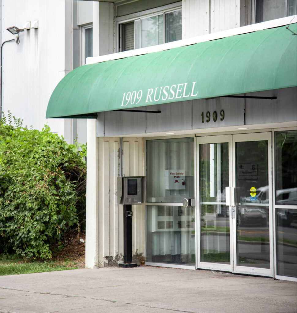 La communauté Manoir Russell est située à l'ouest du boulevard St-Laurent, à un pâté de maisons au nord du chemin Smyth. Elle se trouve à proximité du centre communautaire Dempsey. L'immeuble comprend au rez-de-chaussée une salle communautaire.