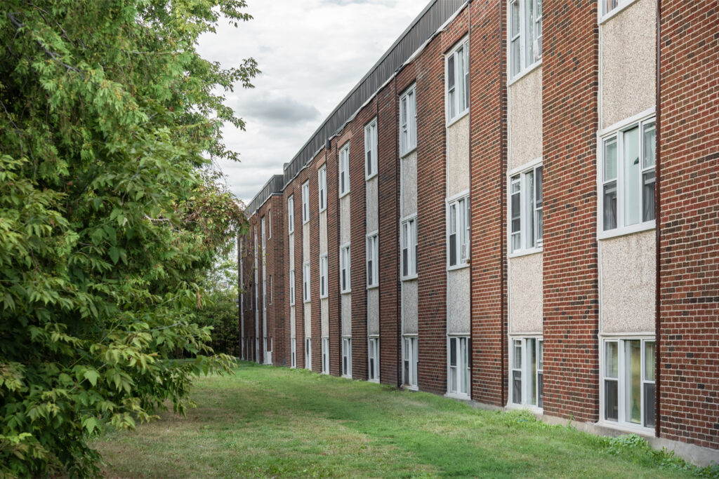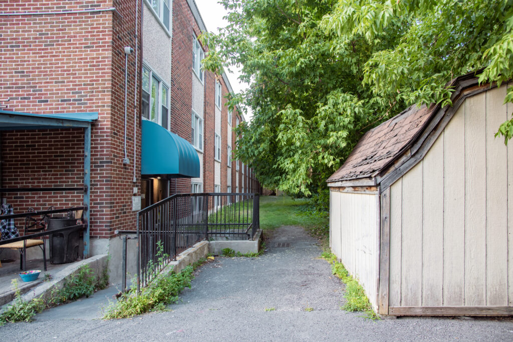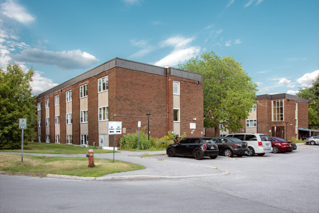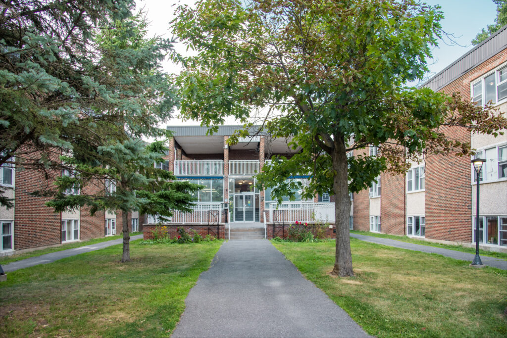 Cet immeuble d'habitation de construction basse est situé à un pâté de maisons au sud du chemin McArthur, près d'un supermarché et à quelques pas d'un arrêt d'autobus pour se rendre aux magasins et restaurants du centre St-Laurent.