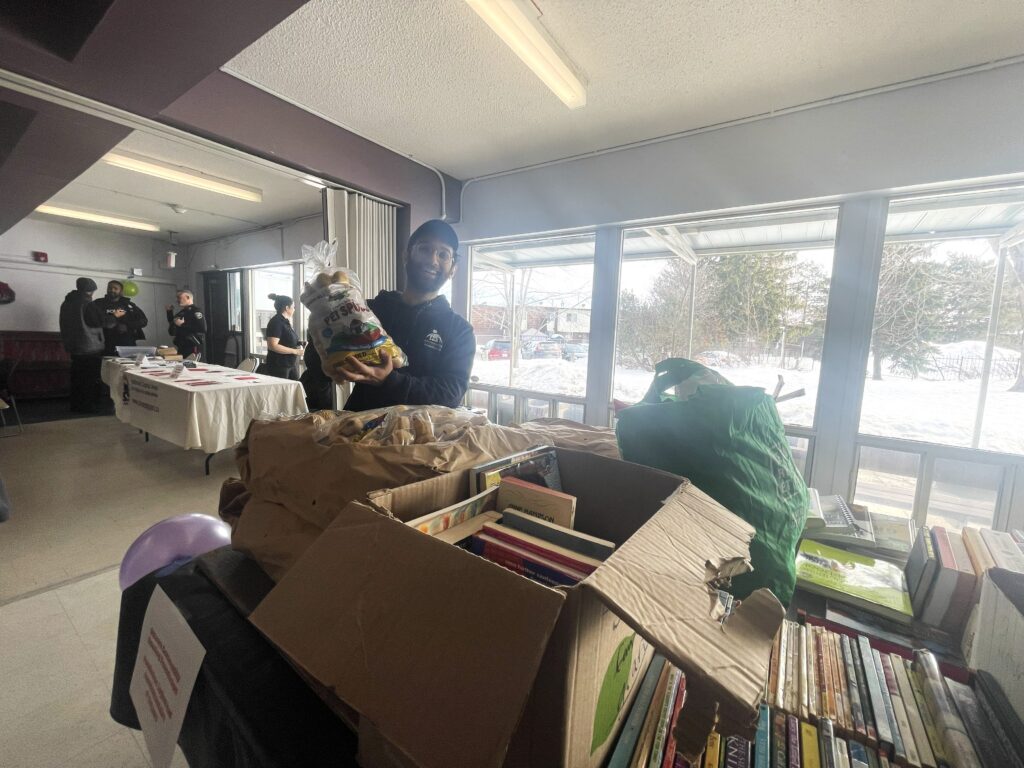 Taha Tariq, Coordonnateur principale de programme de la Fondation LCO, a apporté des dons alimentaires et des livres provenant du Lions Club.