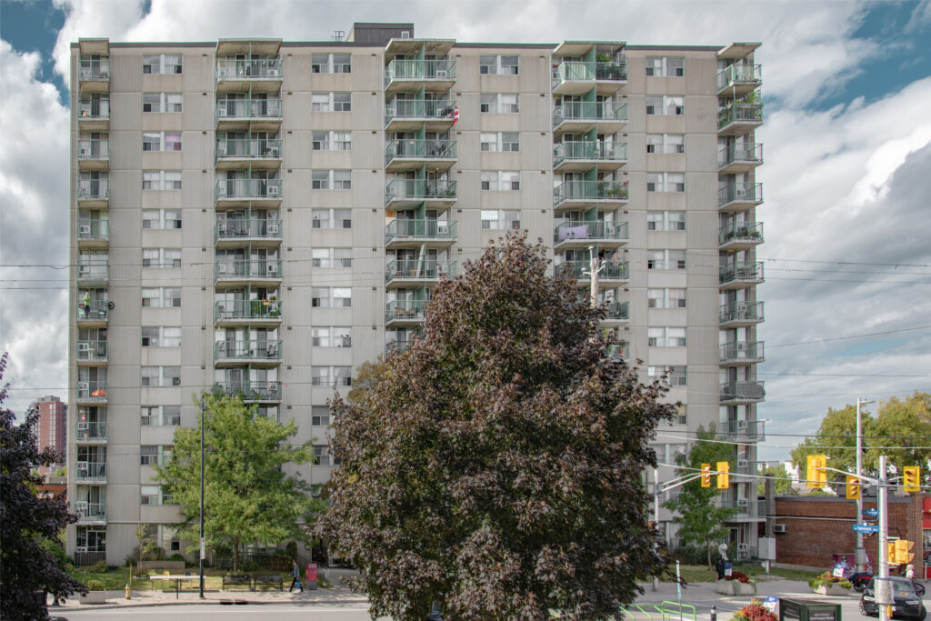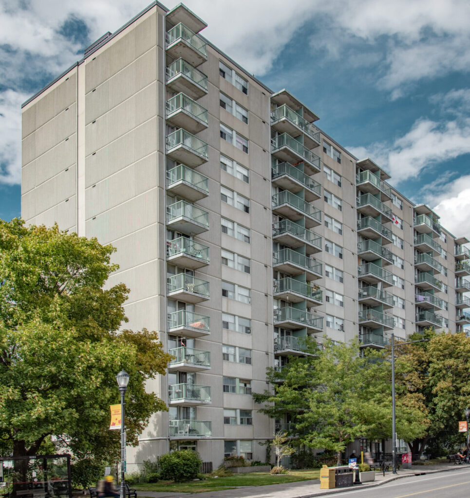 The Wellington community is located in Hintonburg. This seniors’ building is close to shops and services, the Parkdale Market, and has a bus stop situated at the front of the building.