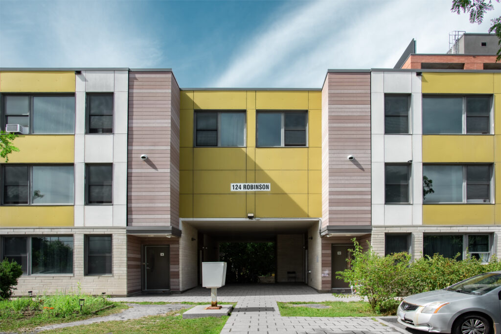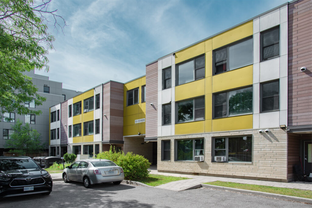 Built in 2016 the Hayley Court townhomes are located close Lees station. This new development is constructed on the foundations of an existing fire damaged structure that used to house 14 homes. This redesign adds 2 additional homes with a total of 10 additional bedrooms and a split level style concept with south / north frontage that maximizes sunlight and cross ventilation for increased tenant comfort. Two of the 3-bedroom townhouse layouts can be easily modified to increase the bedroom count by one (to a 4-bedroom) to accommodate the needs of a larger family. The homes are built to be highly energy efficient, using LED lighting and polished concrete radiant floor heating.